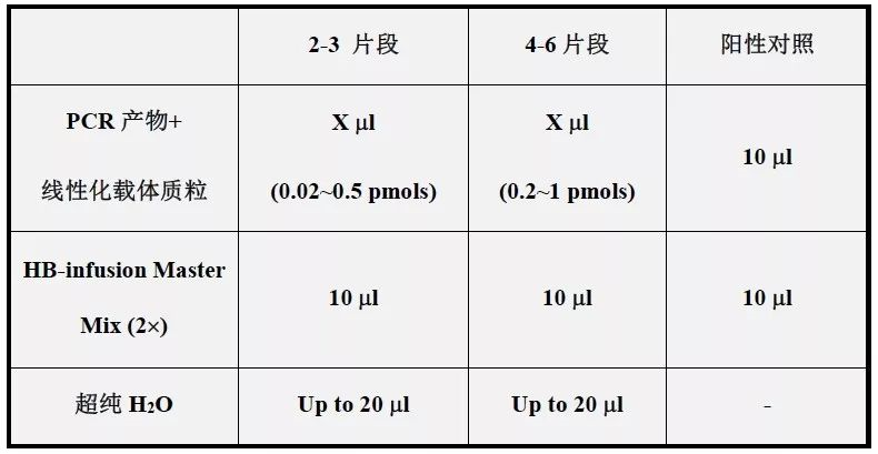 3、按照一定比例把二者混合在HB-infusion™(无缝克隆试剂盒)的2×预混液内,50℃反应20min后直接转化E.coli即可。